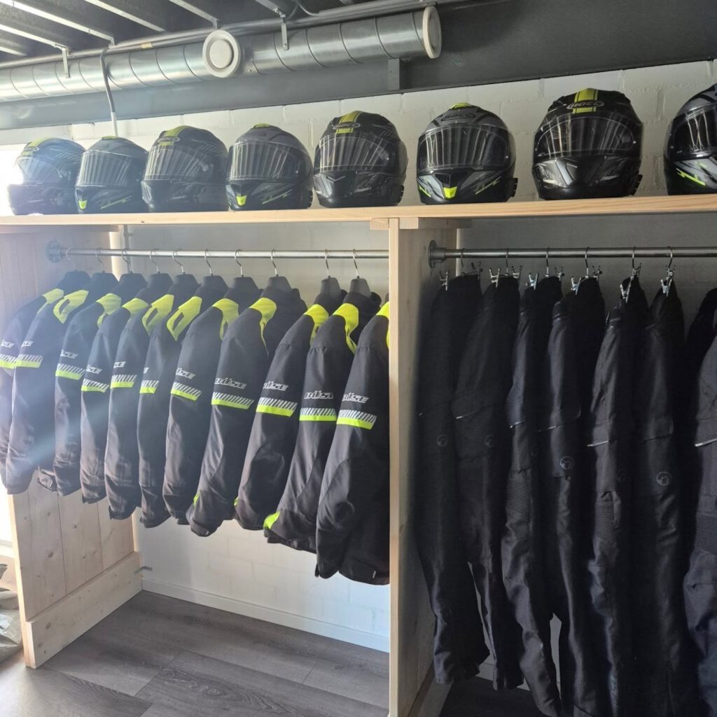 Nicole heeft een aantal jaar als rijinstructeur gewerkt en heeft sinds begin 2025 haar eigen motorrijschool. Wanneer je bij haar gaat lessen hoef je niet per se je eigen gear te hebben, want je kunt van top tot teen alles lenen. Wat ook handig is, is dat in elke helm een communicatiesetje zit zodat je tijdens de les direct contact met elkaar hebt.